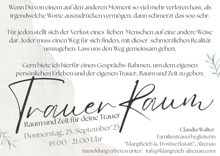 Raum und Zeit für Deine Trauer